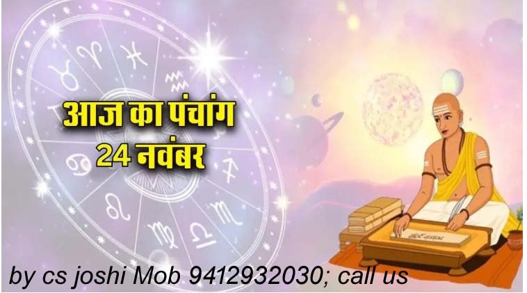 24 नवंबर 2025 को मार्गशीर्ष माह के शुक्ल पक्ष की चतुर्थी तिथि & पूर्वाषाढ़ा नक्षत्र और शुला योग का संयोग & सोमवार को अभिजीत मुहूर्त 11:43 − 12:25 मिनट तक रहेगा। सोमवार को मार्गशीर्ष शुक्ल पक्ष, चतुर्थी  तिथि & सूर्योदय का समय: 06:59 ए एम सूर्यास्त का समय: 05:54 पी एम & ब्रह्म मुहूर्त: 05:14 ए एम से 06:07 ए एम & अभिजीत मुहूर्त: 12:04 पी एम से 12:48 पी एम & गोधूलि मुहूर्त: 05:51 पी एम से 06:17 पी एम & राहुकाल: 08:21 ए एम से 09:43 ए एम & भवाय भवनाशाय महादेवाय धीमते BY CHANDRA SHEKHAR JOSHI MOB. 9412932030