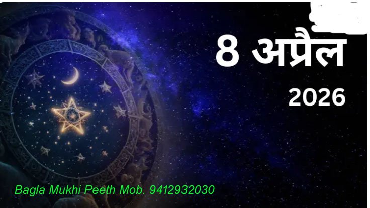 8 अप्रैल 2026 को वैशाख माह के कृष्ण पक्ष की षष्ठी तिथि है। यह षष्ठी तिथि शाम 07 बजकर 01 मिनट तक रहेगी फिर इसके बाद नवमी तिथि & अभिजीत मुहूर्त-आज उपलब्ध नहीं है (बुधवार को यह मुहूर्त मान्य नहीं होता) विजय मुहूर्त 02:17 पीएम से 03:07 पीएम अमृत काल- 08:35 एएम से 10:10 एएम ब्रह्म मुहूर्त-04:24 एएम से 05:11 एएम राहुकाल (अशुभ समय)-12:21 पीएम से 01:56 पीएम यमगण्ड- 07:39 एएम से 09:13 एएम गुलिक काल-10:47 एएम से 12:21 पीएम