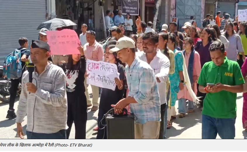 उत्तराखंड अधीनस्थ चयन सेवा आयोग की परीक्षा के पेपर लीक के खिलाफ अल्मोड़ा में बेरोजगारों ने प्रदर्शन किया. बाजार में सरकार के खिलाफ नारे लगाते हुए रैली निकाली. परीक्षा को रद्द कर दोबारा परीक्षा कराने की मांग की. रैली में सैकड़ों बेरोजगार, छात्र और विभिन्न राजनैतिक संगठनों के लोग मौजूद रहे.
