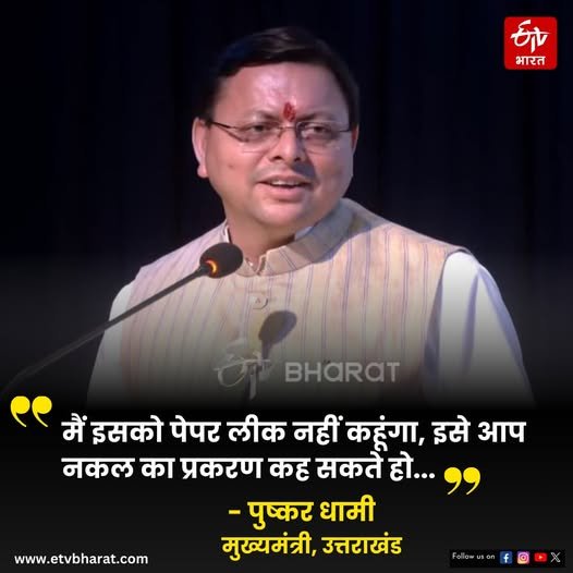 25 SEP 2025 ; उत्तराखंड में #यूकेएसएसएससी परीक्षा के दौरान एग्जाम सेंटर से प्रश्न पत्र के तीन पन्ने बाहर भले ही आ गए हों, लेकिन सरकार इसे #पेपर_लीक नहीं मान रही है. मुख्यमंत्री Pushkar Singh Dhami का मानना है कि नकल या पेपर लीक तब माना जाता है, यदि वो पेपर 9 बजे बाहर आ गया होता या 10 बजे आता. या फिर 10.30 या 10.45 बजे भी आ गया होता, लेकिन ऐसा कुछ नहीं हुआ. उनका कहना है कि ‘इसको पेपर लीक नहीं कहूंगा. इसे आप नकल का प्रकरण कह सकते हो और नकल के प्रकरण के लिए हमने कानून बनाया है. ऐसा नहीं है कि कानून बनने के बाद अपराधी नहीं होंगे, लेकिन कानून से अपराधियों को सजा मिलेगी. इस मामले पर भी सख्ती से कार्रवाई होगी.