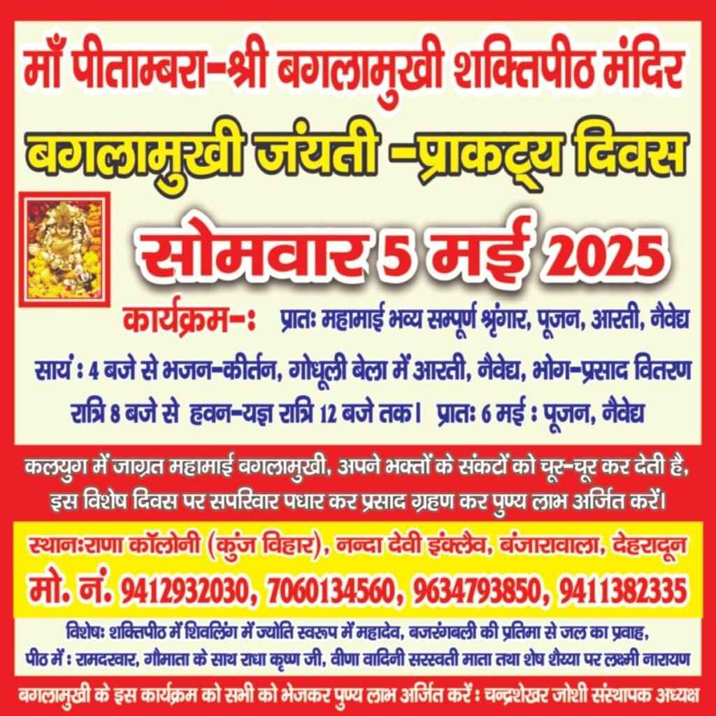 देवी बगलामुखी ; जयंती अवतरण दिवस; 5 May; कामाख्या गए भक्त को माता का संदेश: देहरादून में भी प्राण प्रतिष्ठित हु