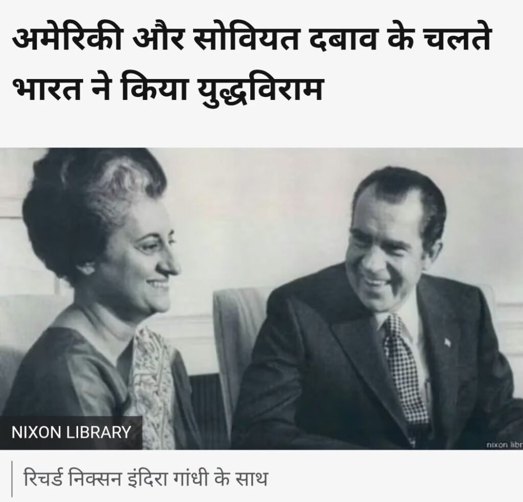 इंदिरा गाँधी ने कश्मीर के बड़े भूभाग पर कब्ज़ा किए बिना युद्धविराम का ऐलान कर दिया.