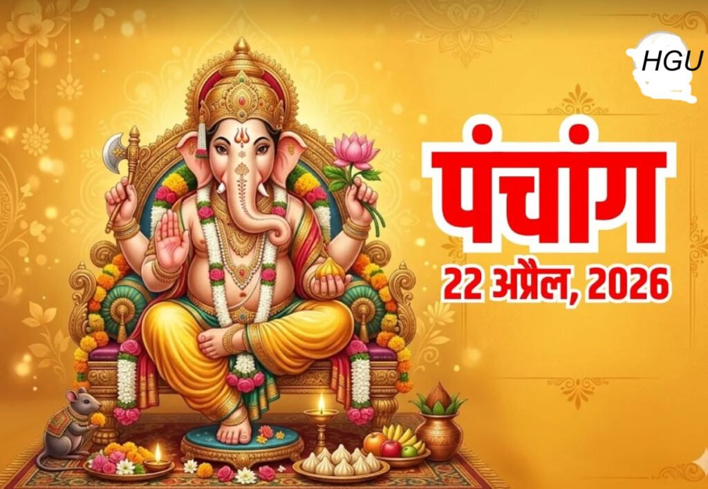 22 अप्रैल 2026, बुधवार को वैशाख शुक्ल षष्ठी तिथि (रात 10:49 बजे तक) है। इस दिन आर्द्रा नक्षत्र (रात 10:13 बजे तक), अतिगंड योग, और बालव करण रहेगा। सूर्योदय 05:49 AM और सूर्यास्त 06:51 PM पर होगा। चंद्रमा मिथुन राशि में संचरण करेंगे। मुख्य शुभ समय (अभिजित मुहूर्त) सुबह 11:50 से 12:42 तक रहेगा, जबकि राहुकाल दोपहर 12:20 से 01:58 तक है।