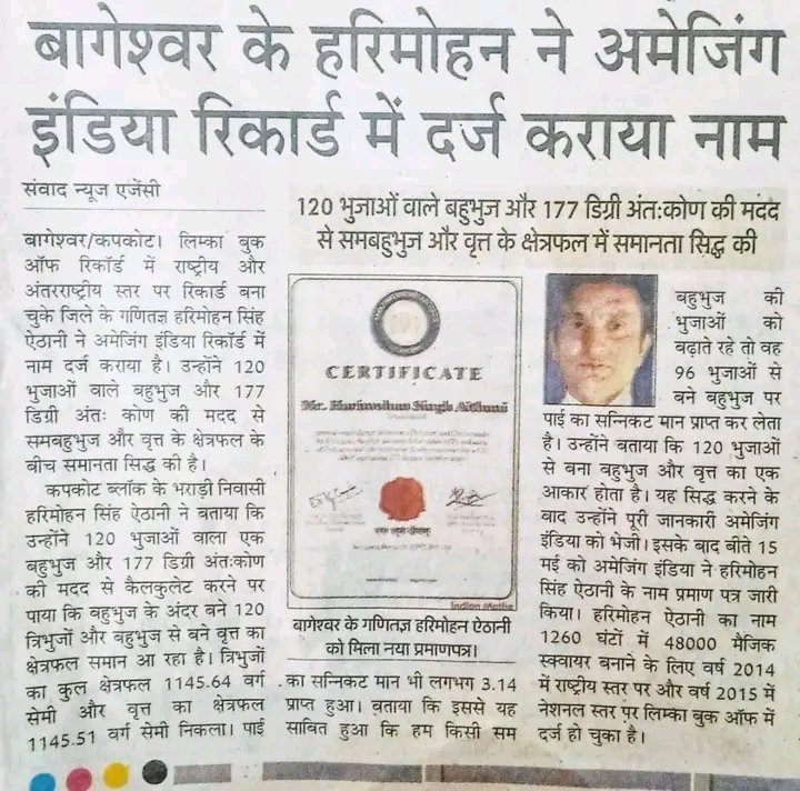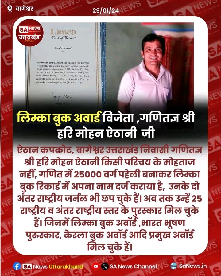हरिमोहन ऐठानी ; भारत के महान गणितज्ञ कपकोट और जिला बागेश्वर (उत्तराखंड) के रहने वाले ; EXECLUSIVE REPORT BY CHANDRA SHEKHAR JOSHI CHIEF EDITOR Mob. 94129320; Leading Newsportal & youtube Channel & Daily Newspaper