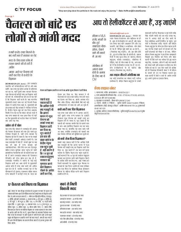 14 मई को हमने खबर प्रकाशित कर कहा था- केदारनाथ में पहुंचते ही विजय बहुगुणा के सितारे उल्टी चाल न चलने लेगे, सत्य साबित हुआ, 16 जून को चार धाम यात्रा रोकने की घोषणा करनी पडी-‘